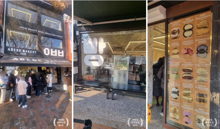 우도땅콩크림 진짜 맛있어요. 8개사면 선물포장이랑 할인도 되더라구요 배민배달도 되고..저만 몰랐나봅니다. 아베베 광장시장점은 실내매장이 3층까지 있어서 편히 먹고가기 편했어요.
