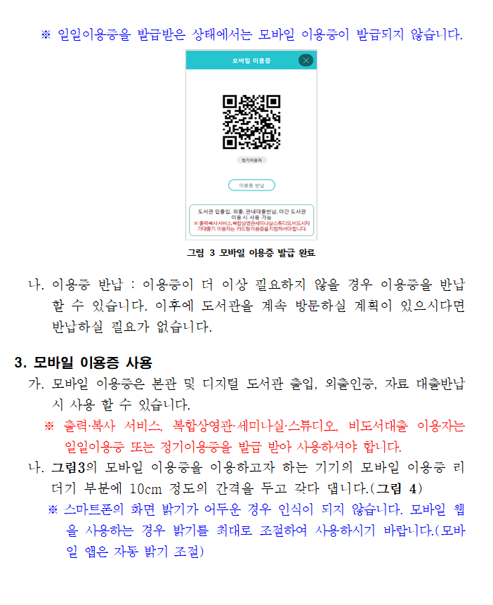 - 일일이용증 및 정기이용증 사용자도 모바일 이용증 발급 가능
