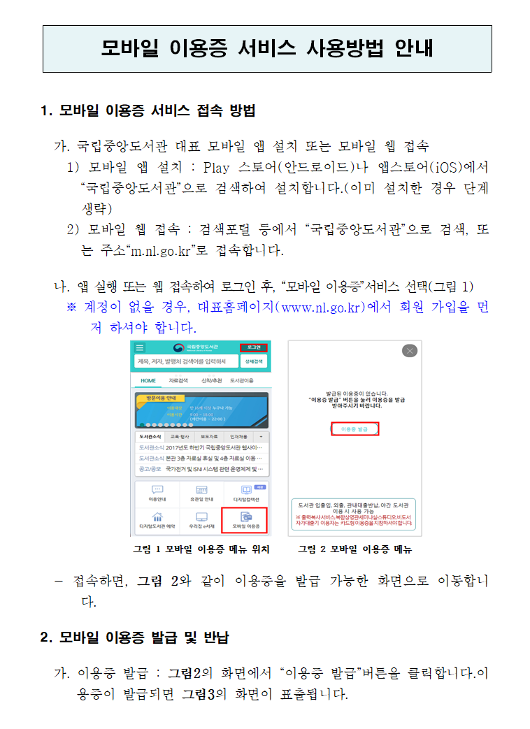 - 모바일 이용증 (모바일 앱/웹에서 모바일 이용증 발급)