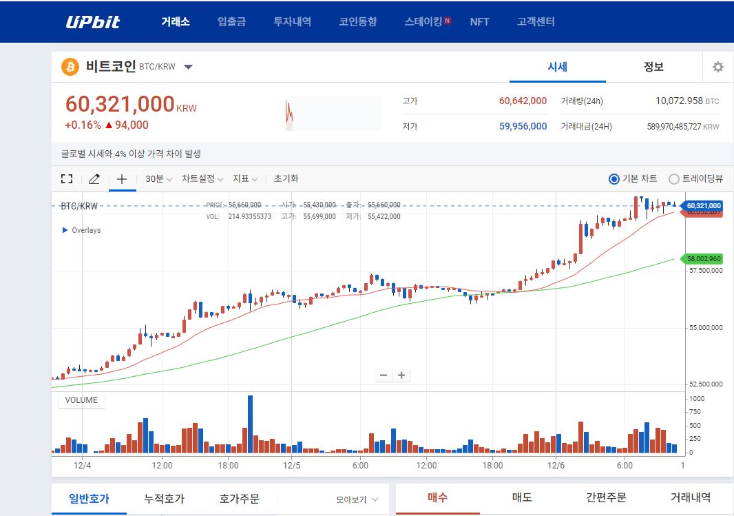 [ 업비트 기준 2023-12-06 현재 시세 60,321,000 KRW / 고가는 60,642,000 KRW]