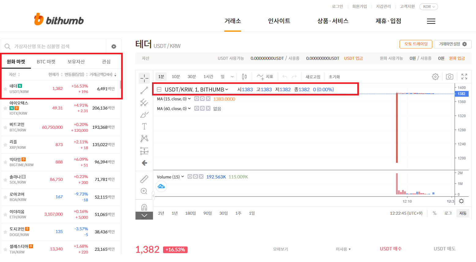 USDT(테더) 원화마켓 추가